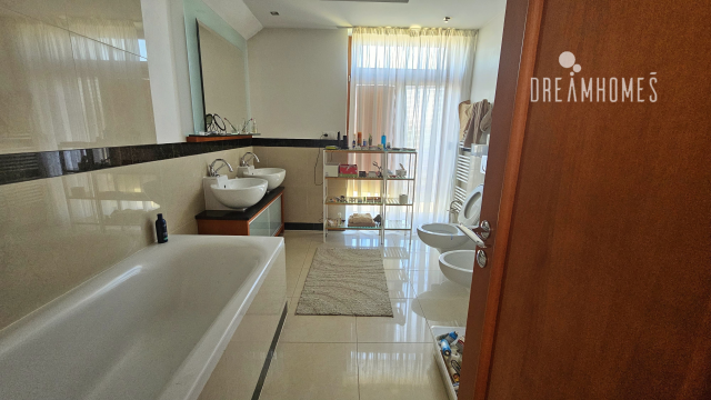 Na poschodí sú 4 izby, 2 kúpelne, šatník, hala a dva balkóny.
